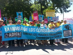 Para poner fin a estos abusos injustos, se han convocado en diversas ciudades manifestaciones, que en Madrid comenzará a las su recorrido a las 12h en Atocha agrupando a los colectivos de diferentes mareas constituidas contra los recortes del Gobierno en servicios públicos (Educación, Sanidad, etc) y Cumbre Social, a los que ADICAE quiere sumar sus protestas por los abusos cometidos por la banca y en defensa de los derechos de los consumidores. Y es que desde nuestra asociación consideramos que el sector financiero tiene parte de responsabilidad en la crisis y defendemos que no deben ser los consumidores los que paguen las consecuencias de la especulación y desregulación financiera.