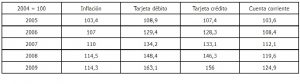 Desde 2004 los precios han aumentado un 14,3%, mientras que las comisiones por tarjetas bancarias lo han hecho en un 60% aproximadamente. La comisión de las cuentas corrientes se ha marcado un 25% de subida en ese periodo. Todo indica que la actitud de la banca es claramente abusiva para con el cliente.